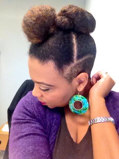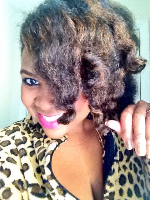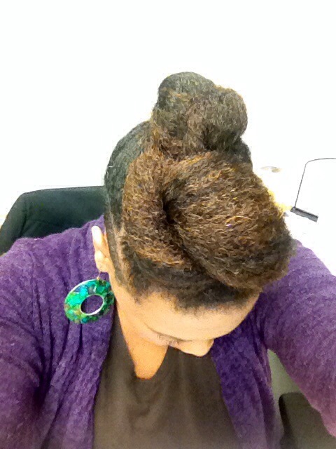 So I decided to take a shot at a faux bob today. I had twisted my hair in about 6 chunky twists last night, pulled them back into a ponytail and banded the ponytail so my hair was already nice and stretched this morning.