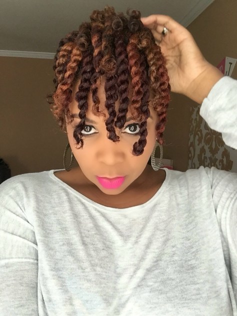With my now stretched hair I’m able to very easily manipulate my hair and create a nice twisted updo. Here is my stretched style from yesterday