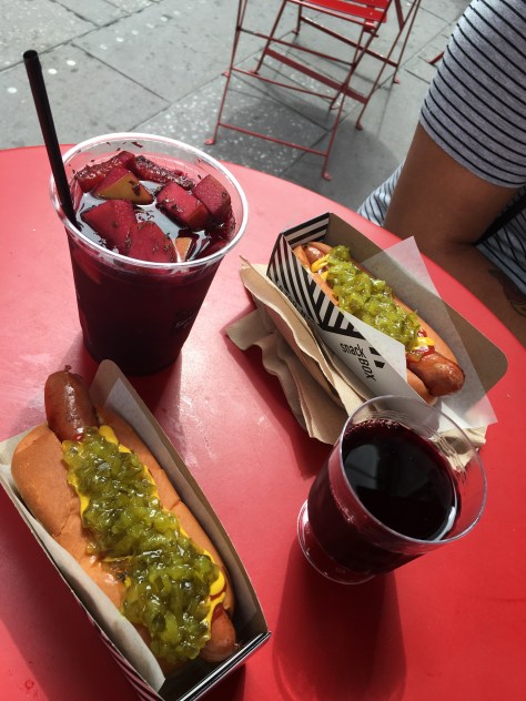 After shopping at those stores we decided to have some lunch. On the menu, New York’s best hot dogs, sangria and wine. The sangria was phenomenal!
