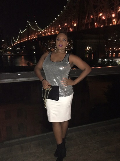 After eating and watching several upsets on College Game Day we started getting ready for the night. We booked reservations at 808 Penthouse a rooftop restaurant lounge in Queens. I pulled out lots of sequins for the evening.