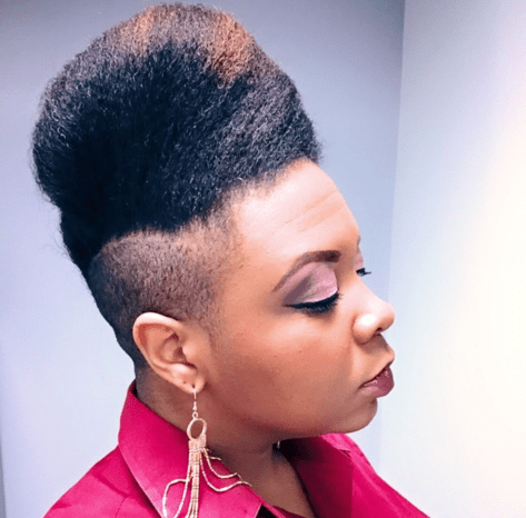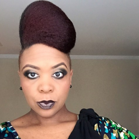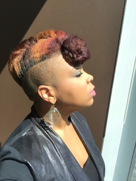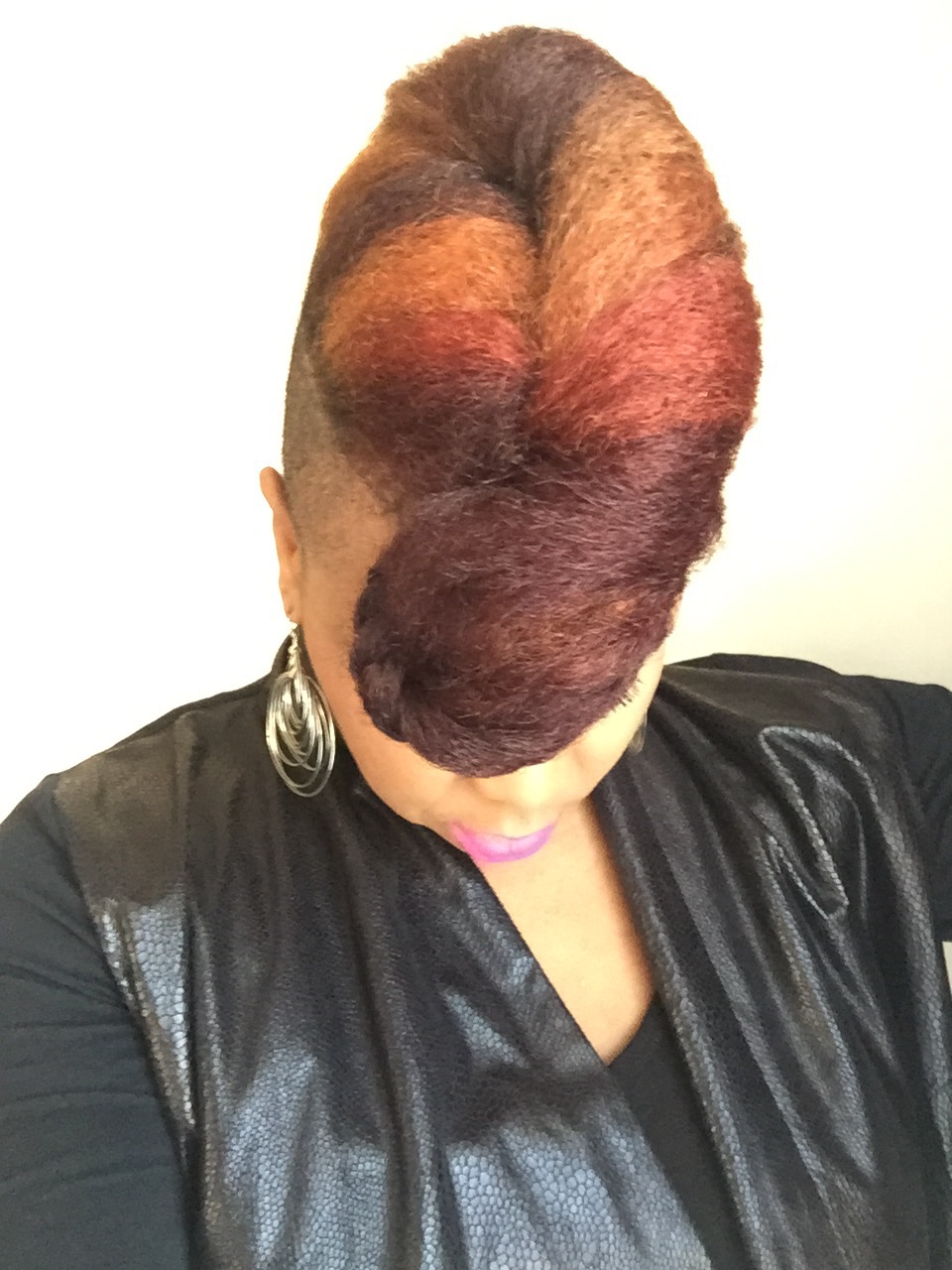 4. This one is my favorite. I started by pulling the hair to the left in a bit of a swirl. I tucked the hair in a very compact but high roll going diagonally. The hair was again dry and completely stretched. Absolutely loved the shape!