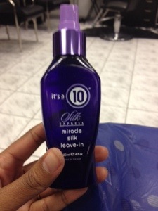 Before she started she applied a product called It’s a 10 Silk Express Miracle Silk Leave-in. You guys I have never felt my natural hair so straight and light! I was in awe! After the initial amazement came the unfortunate part…the trim. My hair needed a trim fairly bad and although she was delicate I pretty much threw my growth challenge out the window. On the upside my hair is healthier!