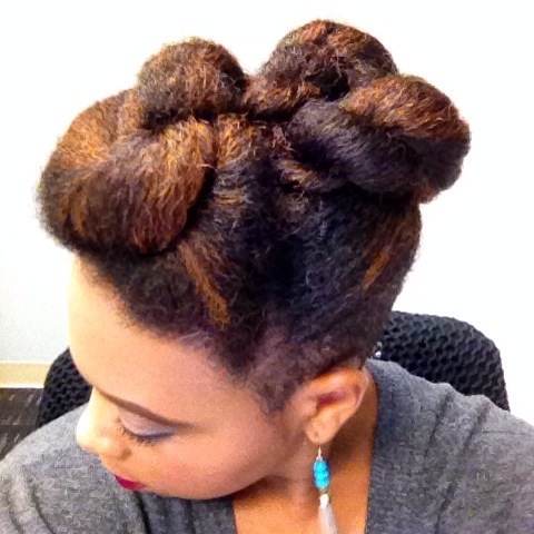 With my hair of course! You all know how much I loved twisted updo’s. Honestly, I can’t see that ever changing…unless I decide to do another full big chop. There is just so much versatility and opportunity for awesome styles. The options are endless because I am the architect! Before I go on and on about the awesomeness of twisted updo’s (which I easily can!) here’s a look at a couple of my creations this week. Hope you like them!