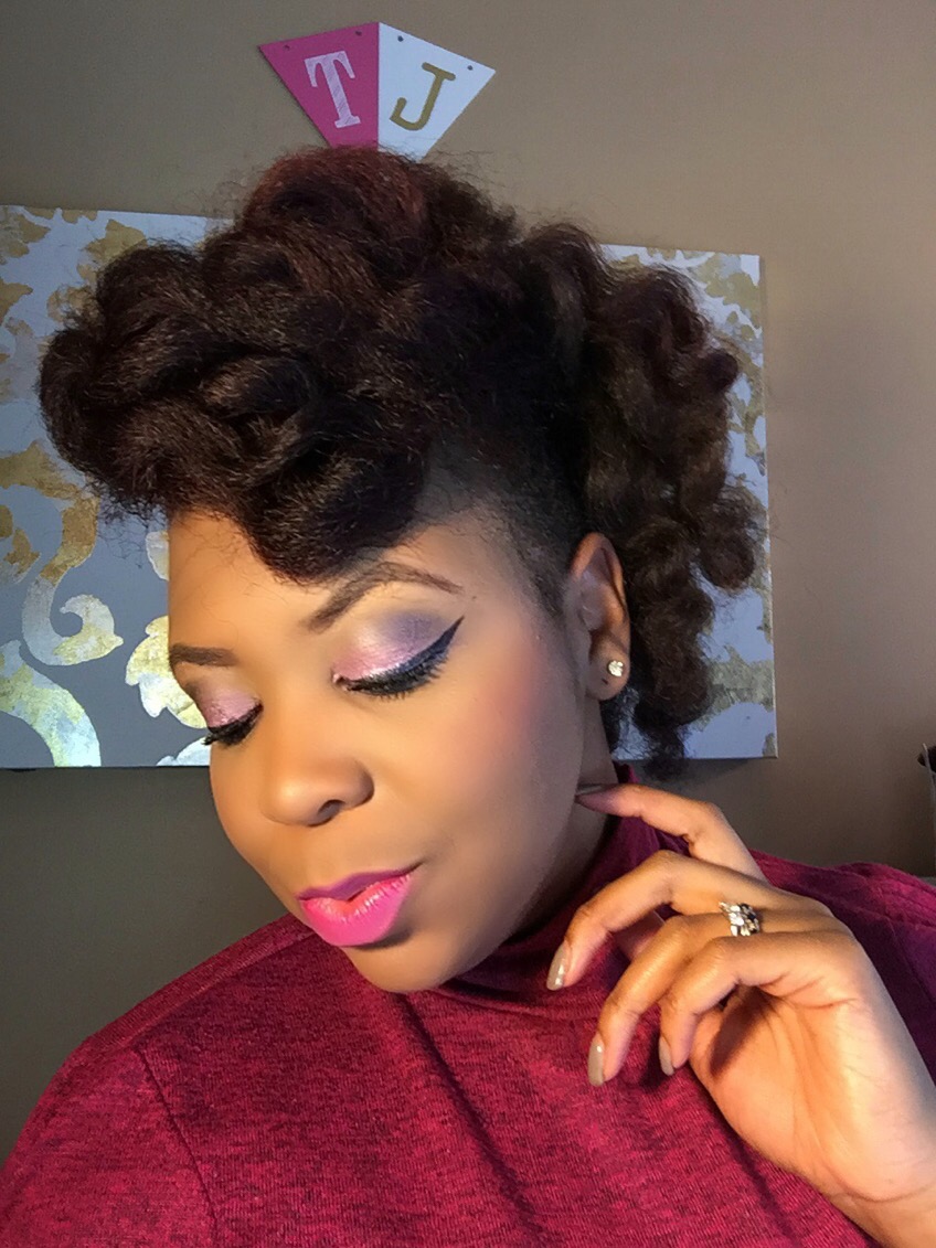 Today I’ve got another fall Hair and makeup look I hope you’ll enjoy. The makeup is starring the beautiful color of burgundy, and the hair is a quick, creative and captivating roll/twist combination updo.