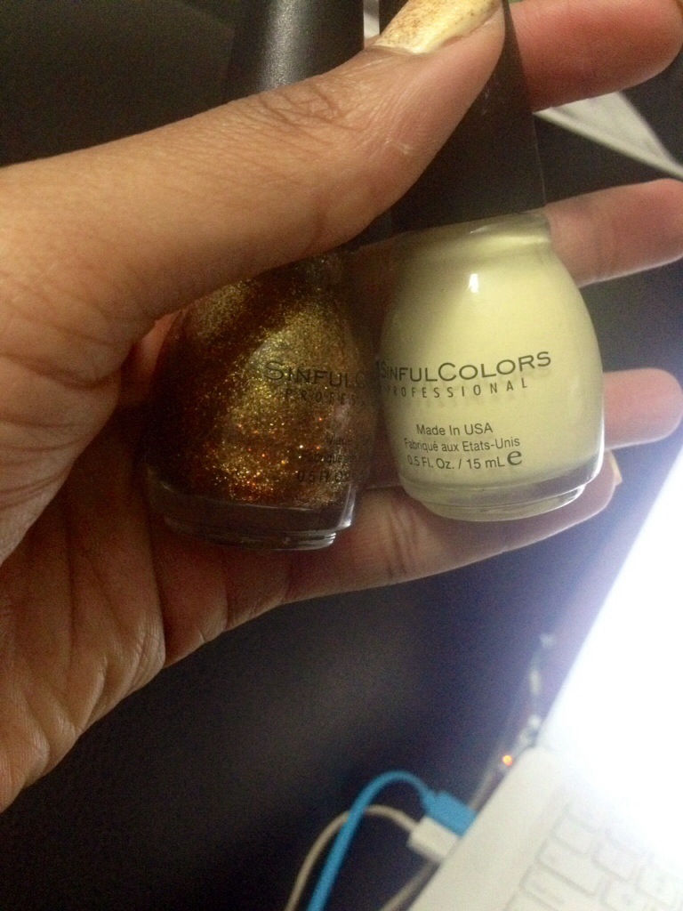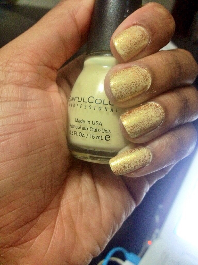 This is the creative name of my newest nail color combination. I have to be honest, I wasn’t so sure about the pale yellow that Sinful Colors calls “Unicorn.” I though it might be a bit too pale which is why I opted for their sparkle overlay “All About You”. I think it was a good choice.