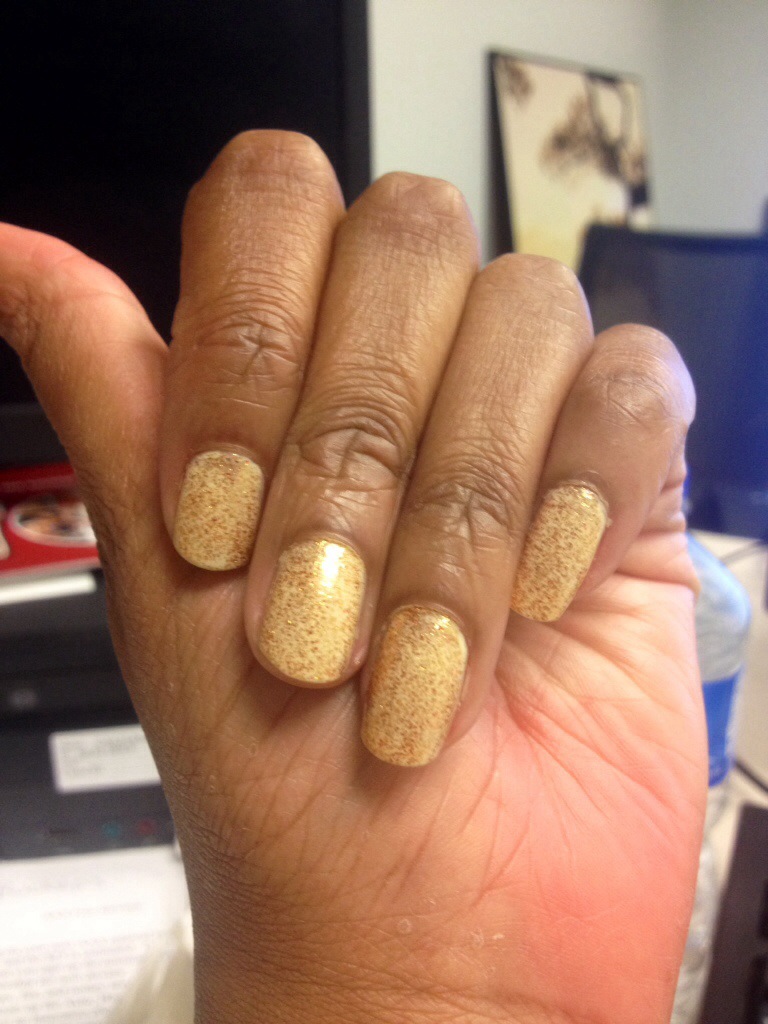 Last week’s nail color selection was from Revlon. It was like a really pretty iridescent gold called Chameleon. Very unique. Loved it! Here are some pics.