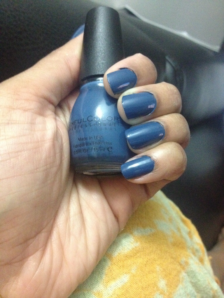 That’s the name for this week’s SinfulColors nail polish selection. It seems like a perfect navy and gray combination. I love the deepness of the color. It has a cozy look/feel to it. Think I’ll enjoy wearing this one. What do you think?